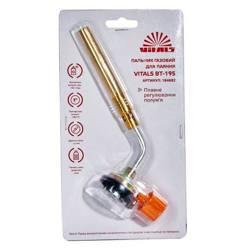 Пальник газовий для паяння Vitals BT-195 - незамінний інструмент для професіональних майстрів і любителів, які займаються паянням різних матеріалів. Цей газовий пальник має діаметр сопла 10 мм, що забезпечує точну і ефективну роботу. Корпус виготовлений з металу, що забезпечує надійність і довговічність. Використовувати підходять бутан і ізобутан як паливо. Цей пальник є надійним помічником при проведенні різних ремонтних робіт, паянні електроніки, приладів, металевих конструкцій та інших виробів. Він легкий у використанні і зручний у триманні, а також має компактні розміри, що дозволяє без проблем зберігати його в будь-якому місці.