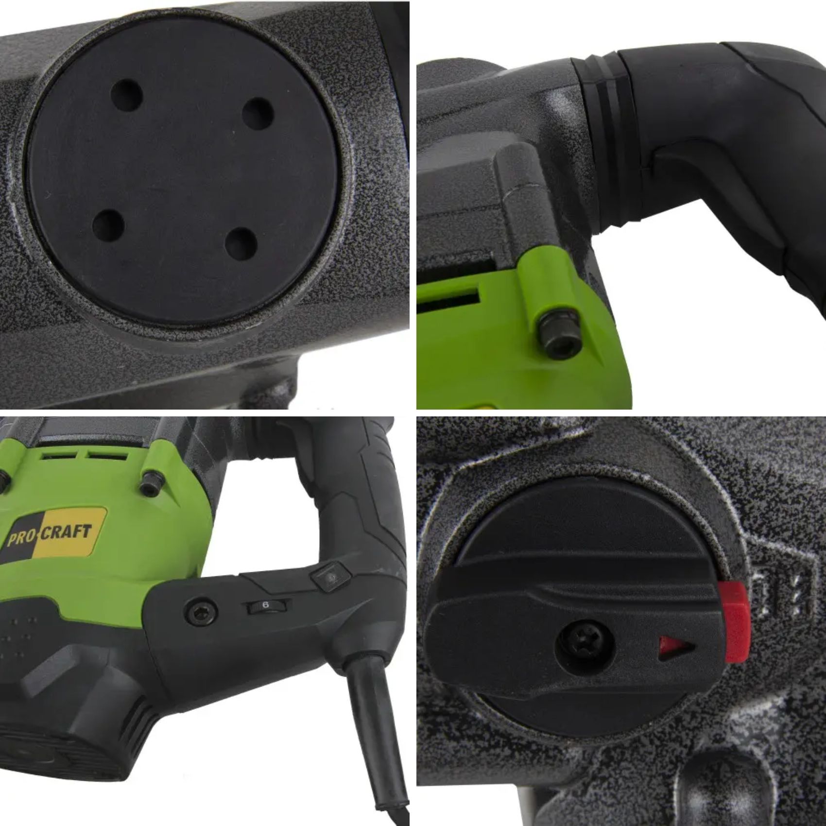 Перфоратор Procraft BH2350 SDS MAX professional є професійним інструментом з режимами свердління без удару, довбання з ударом без свердління і буріння свердління з ударом. Забезпечується живлення з мережі. Перфоратор має пряму конструкцію і тип патрона SDS-Max. Одною з ключових особливостей є можливість регулювання обертів. Цей перфоратор підходить для професійного використання в будівництві і ремонтних роботах.