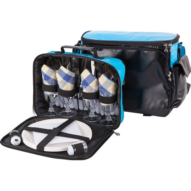 Пікніковий набір із термосумкою та посудом для 4 осіб. Забезпечує зручне зберігання і транспортування продуктів із підтриманням температури.