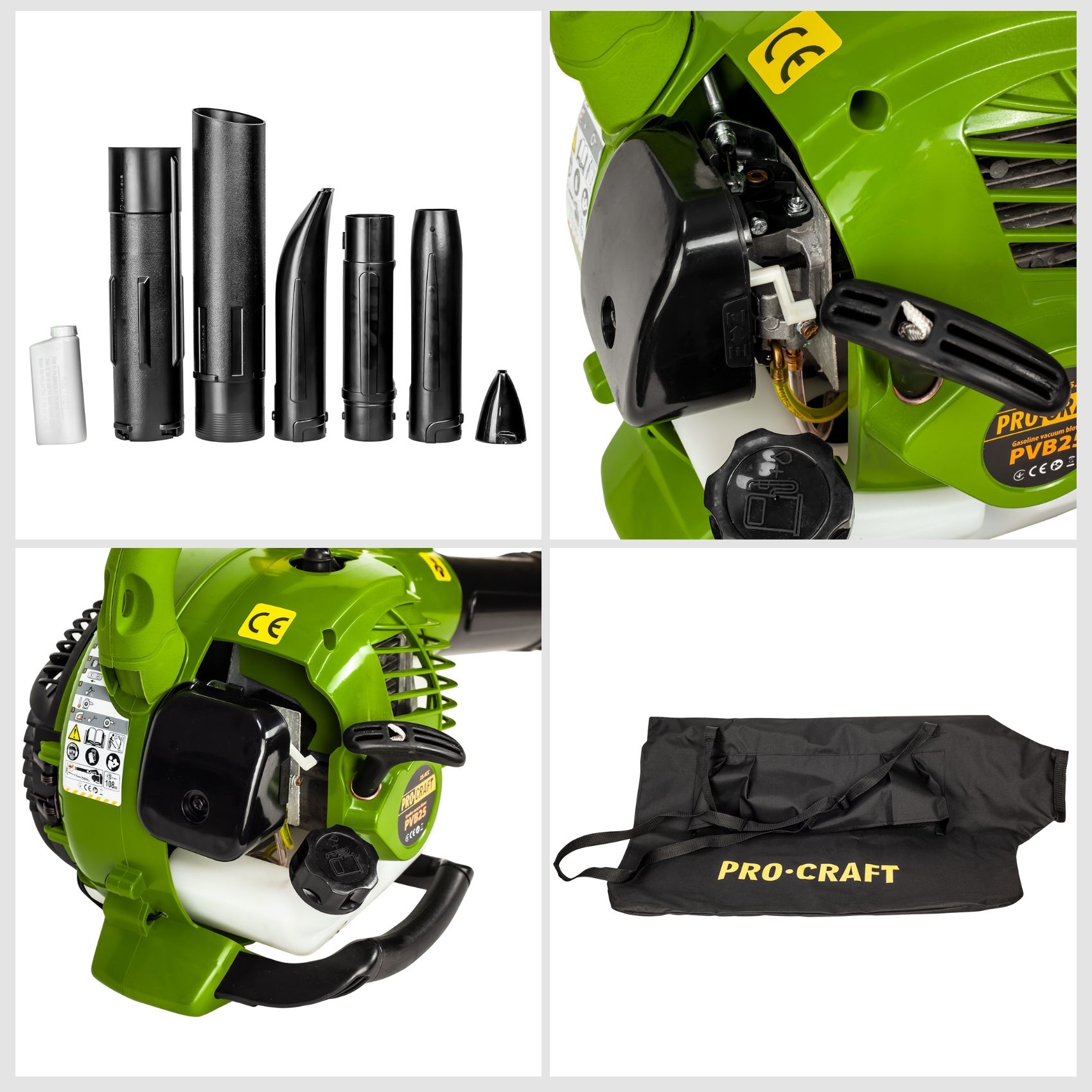 Додаткові унікальні властивості і переваги пилососа-повітродувки Procraft PVB25: комфортна ручка для зручного утримання і керування; високоякісний двигун, що забезпечує безперебійну роботу; просте і зручне управління кнопками; універсальний набір насадок, що дозволяє прибирати на різних поверхнях і у важкодоступних місцях.