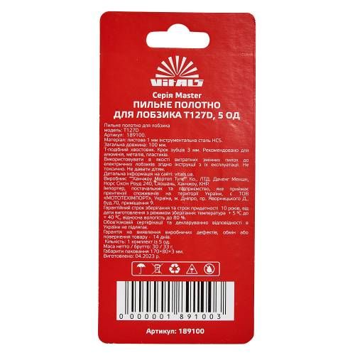 Пиляльне полотно Vitals Master T127D 5 од. застосовується для розпилювання алюмінію, листового металу та пластику. Воно чудово підходить для використання в гаражах, майстернях та будівельних роботах.