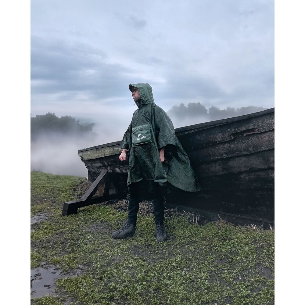 Плащ-дощовик Naturehike CNH23RG001 темно-зеленого кольору — це зручний та функціональний захисний аксесуар для туристів і любителів активного відпочинку. Завдяки продуманій конструкції з подовженою передньою та задньою частинами, він забезпечує надійний захист ніг навіть під час сильних опадів. Його можна легко носити як поверх рюкзака, так і під нього, що дозволяє зберігати свободу руху, що особливо важливо під час тривалих походів.