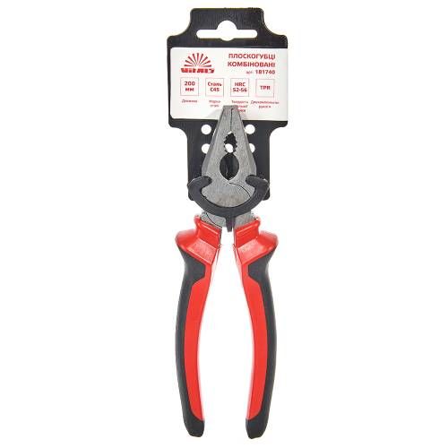 Плоскогубці комбіновані 200 мм Vitals з двокомпонентною прогумованою ручкою. Виготовлені зі сталі №45 і мають антикорозійне покриття на губках. Довжина інструменту 200 мм.