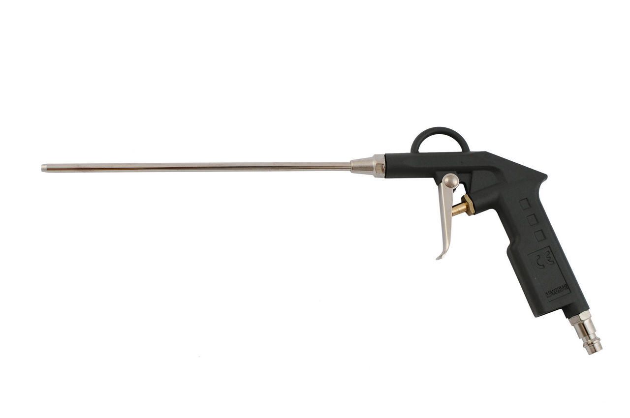 Пневмопістолет для продувки довгий, 210мм, ідеально підходить для використання в автомобільній промисловості для продування двигунів, панелей та інших частин автомобіля. Також може використовуватися в будівництві для продування пилу з конструкцій та бетонних поверхонь. У металообробці використовується для продування пилу з виробів перед нанесенням фарби або покриття. Застосовується і в інших галузях, де є потреба в продуванні поверхонь від непотрібних частинок.