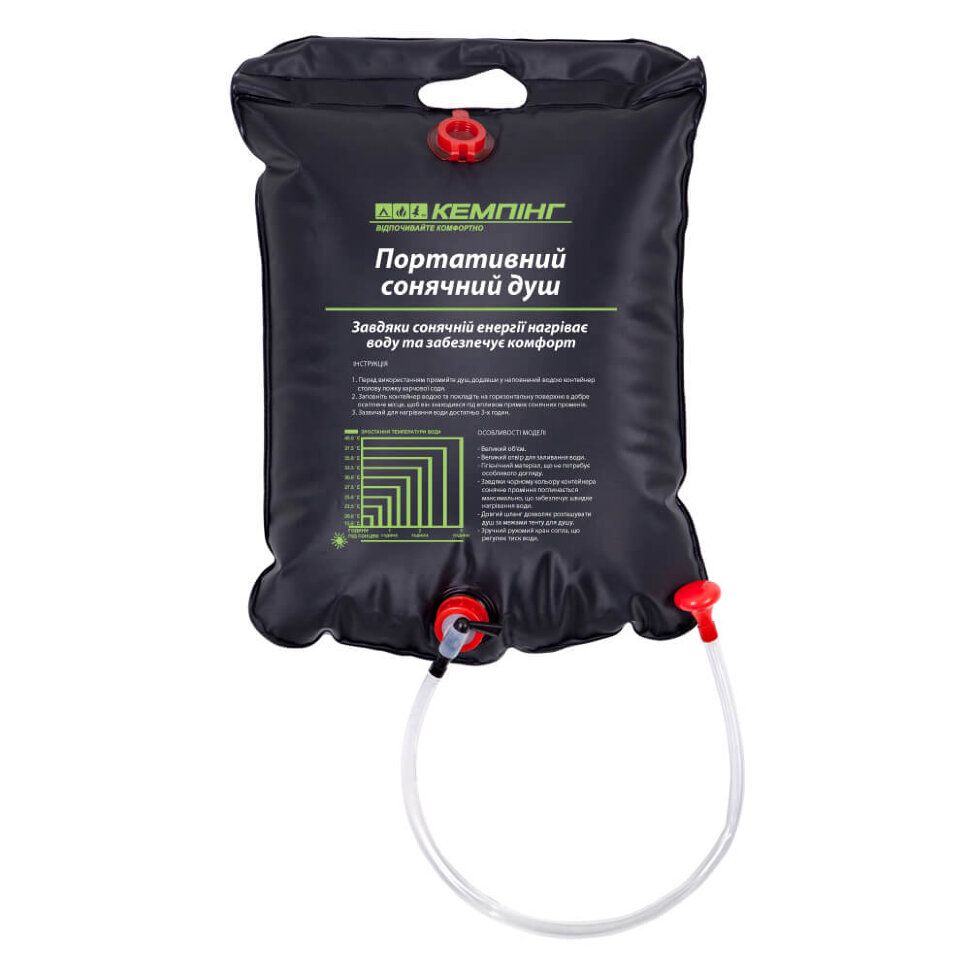 Для любителів турпоходів і заміських виїздів ми пропонуємо новий аксесуар-мобільний душ. Наш душ-це невеликий герметичний резервуар об'ємом 20 л.до нього приєднується еластична трубка з запірним клапаном і насадкою розсіювача водного струменя.