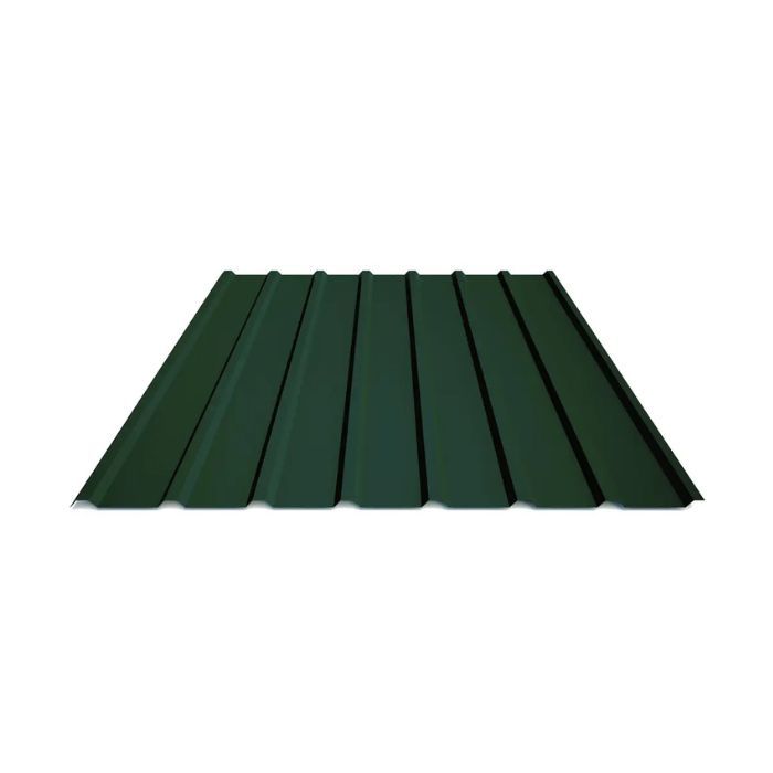 Профнастил ПС-10 оцинк RAL 6005 (Зелений глянець) 0,3х1200х1800мм (2,16м2) - це високоякісний будівельний матеріал, який виготовлений з оцинкованої сталі. Вона має ширину загальну 1,2 метра та товщину металу 0,3 мм. Профіль хвилі становить ПС-10. Цей профіль має глянцеве покриття RAL 6005, яке надає йому зелений колір та красивий вигляд. Цей профнастил має площу 2,16 квадратних метра.