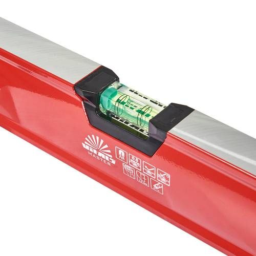 Рівень Vitals Master 60 см — це професійний інструмент, створений для точного контролю горизонтальних, вертикальних та похилих поверхонь. Модель оснащена трьома вимірювальними капсулами, що дозволяють виконувати перевірку під кутами 180°, 90° та 45°. Завдяки потужним вбудованим магнітам, рівень легко фіксується на металевих поверхнях, що забезпечує зручність у роботі однією рукою. Колби мають протиударний захист і стійкі до ультрафіолетового випромінювання, що гарантує їхню довговічність. Корпус виготовлений із міцного алюмінієвого сплаву товщиною 1,2 мм, що поєднує легкість та високу жорсткість. Завдяки фрезерованій основі інструмент забезпечує високу точність вимірювань навіть на нерівних чи забруднених поверхнях. З боків розміщені гумові заглушки, які надійно захищають рівень від пошкоджень при падінні чи ударі.