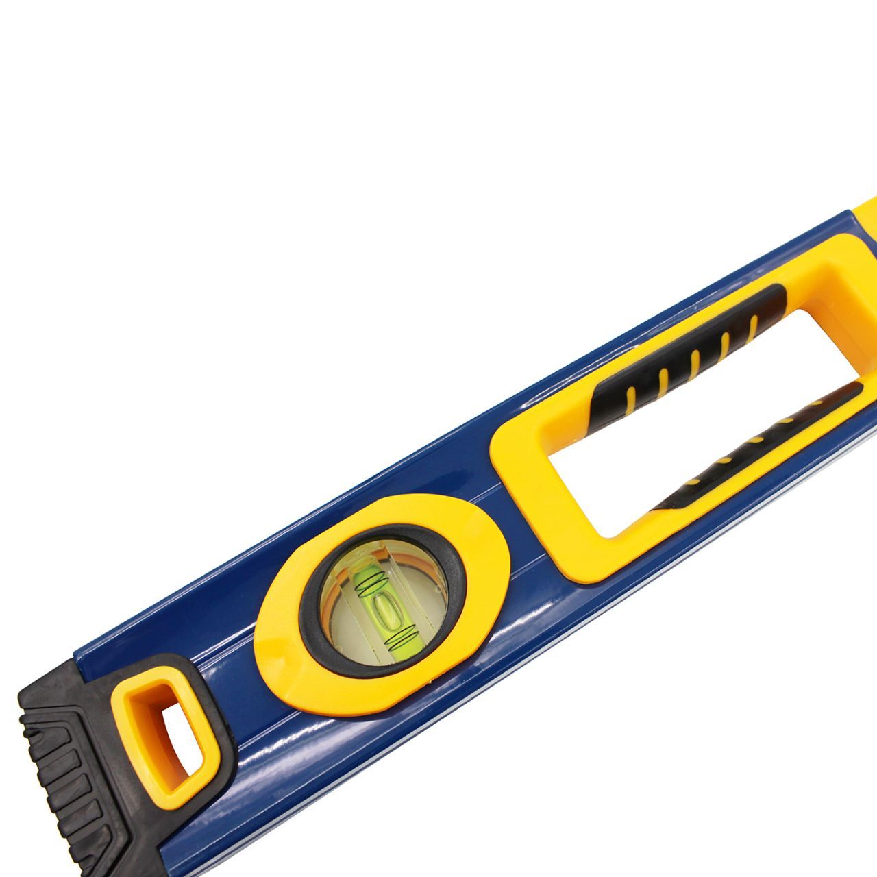 Рівень з ручками 1000 мм відмінної якості. Його точність становить 0,5 мм на метр, що забезпечує точне вимірювання. Капсула рівня регулюється на 360 градусів, що дозволяє використовувати його в різних положеннях. Упори мають протиковзкі властивості, що забезпечує стабільність під час роботи. В комплекті є 3 вимірювальні капсули. Використовується для точного вимірювання рівності поверхонь.