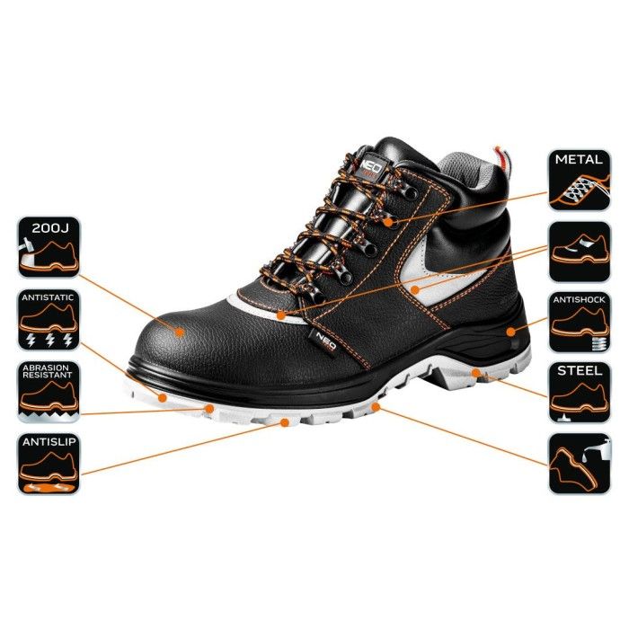 Додаткові переваги взуття включають водонепроникність, антистатичні властивості та легкий вагу. NEO Tools - ваш надійний помічник на будь-якому робочому місці.