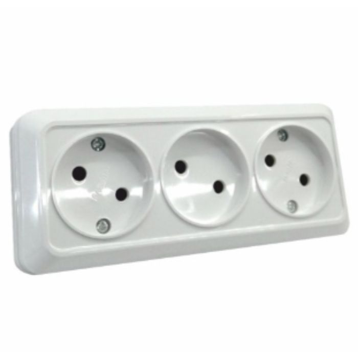 Розетка потрійна б/з накладна Титан біла ідеально підходить для використання в будинках, квартирах, офісах, магазинах та інших приміщеннях.