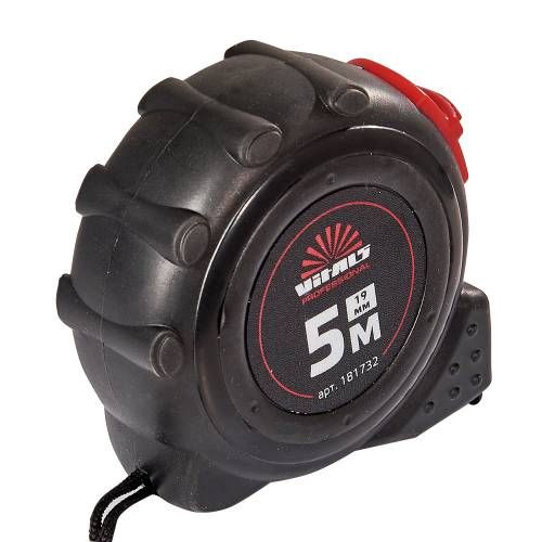 Рулетка гумова з нейлоновим покриттям полотна 5 м × 19 мм Vitals Professional - це високоякісний і надійний інструмент, який призначений для вимірювання відстаней. Вона має довжину стрічки 5 метрів і ширину 19 мм. Корпус рулетки виконаний з АБС-пластику з покриттям з гуми, що забезпечує міцність і комфорт при використанні.