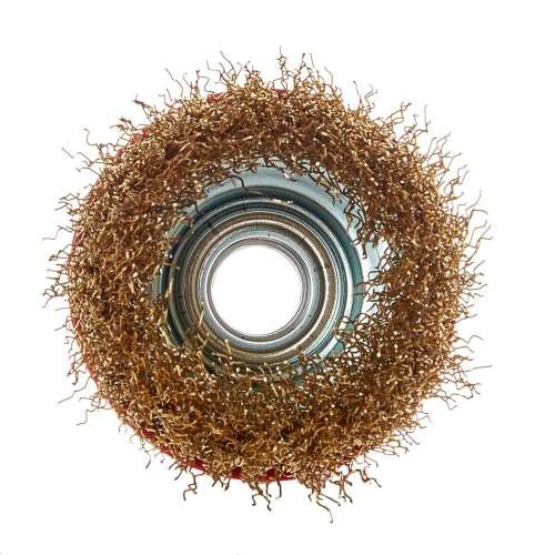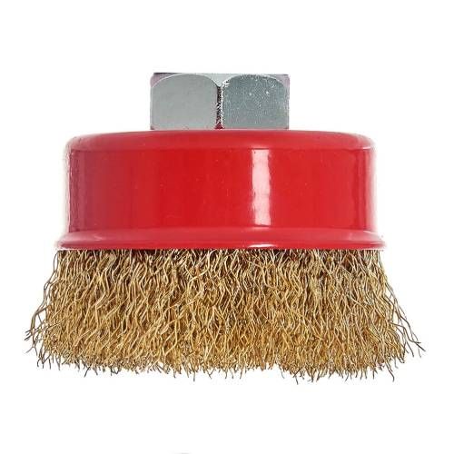 Щітка-чашка Vitals гофрована латунована 65 мм М14, 0,3 мм призначена для обробки дерева, зняття фарби, шліфування металу, зняття іржі.