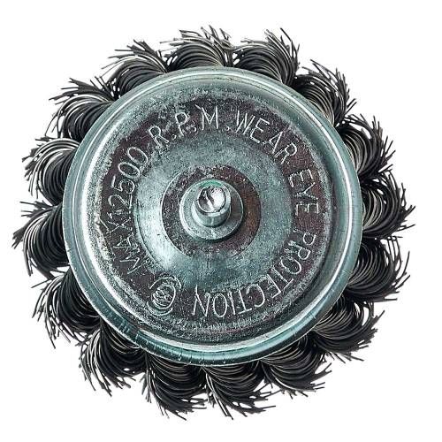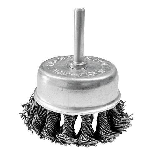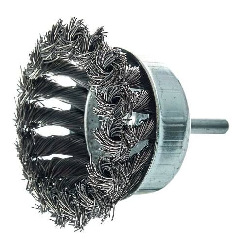 Щітка-чашка з хвостовиком Vitals плетена сталь 75 мм, 0,5 мм ідеально підходить для використання на будівельних об'єктах, в автомобільній промисловості, виробництві меблів, реставрації інтер'єрів і багатьох інших галузях. Вона ефективно очищає поверхні від фарби, ржавчини і бруду, а також полірує їх, забезпечуючи гладкість і блиск.