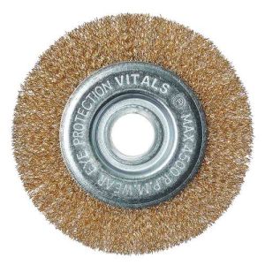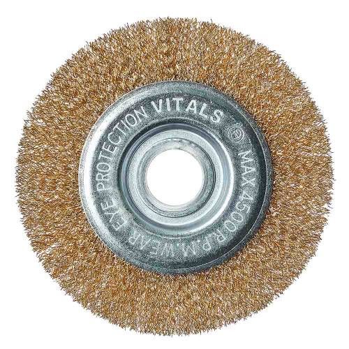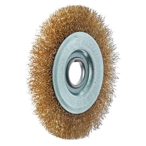 Щітка дискова Vitals гофрована латунована 125×22,2 м, 0,3 мм призначена для обробки дерев'яних та металевих конструкцій у важкодоступних місцях, зняття фарби, іржі, лаку, обробки зварних швів.