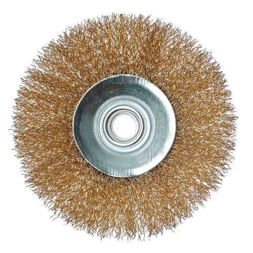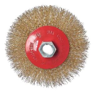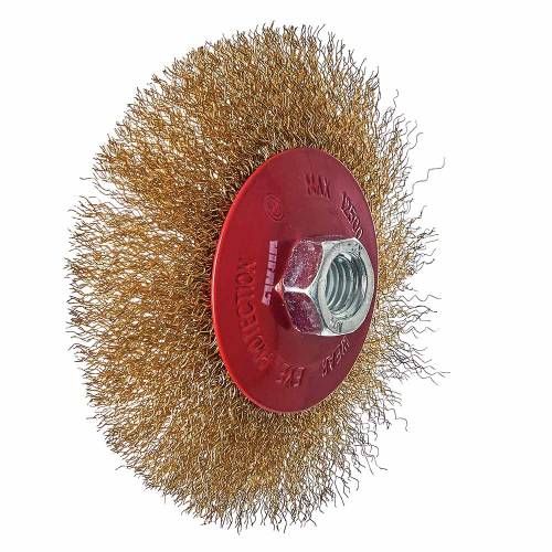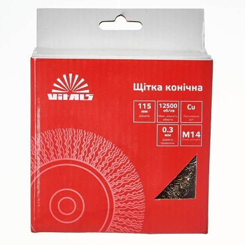 Щітка конічна Vitals гофрована латунована 115 мм М14, 0,3 мм - це високоякісний інструмент для роботи з металом. Вона має різьбу шпинделя М14 і діаметр 115 мм. Виготовлена з гофрованої проволоки, що забезпечує високу якість та довговічність. Ця щітка ідеально підходить для ремонту та обробки металевих поверхонь. Завдяки своїм особливостям, вона дозволяє ефективно очищати й полірувати метал, вилучати фарбу й зробити поверхню більш придатною для подальшого використання.
