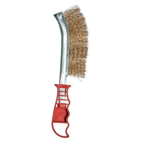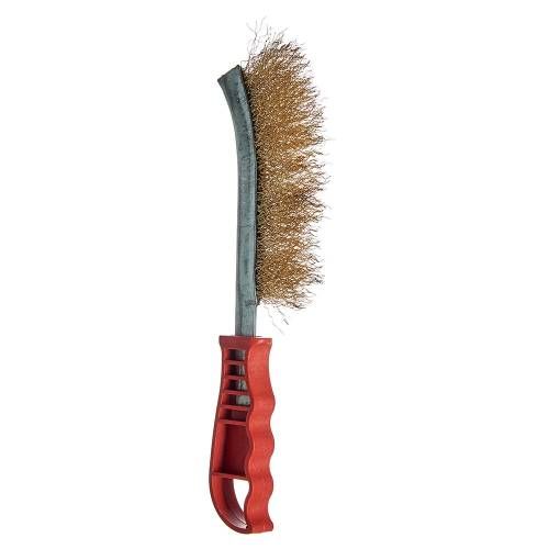 Щітка ручна Vitals латунна 250 мм, пластикове руків’я по металу призначена для робіт із зачистки поверхонь від лакофарбових покриттів, іржі, окалини та різноманітних забруднень.
