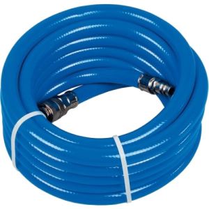 Поліуретановий армований шланг Miol внутрішнім діаметром 9,5 мм і зовнішнім діаметром 16 мм має довжину 15 метрів. Цей шланг володіє високою міцністю та стійкістю до розривів і зношування, що робить його ідеальним для використання в садівництві, будівництві та в автомобільній галузі. Він легкий і зручний у використанні, що дозволяє легко переміщати його та зберігати. Шланг володіє відмінною стійкістю до впливу ультрафіолетових променів і морозу, що забезпечує тривалий термін служби.
