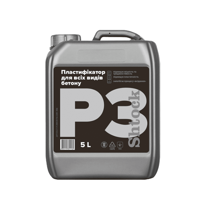Пластифікатор для всіх видів бетону R3 Shtock - це готовий до застосування пластифікатор, який використовується для поліпшення якості бетону. Він не тільки забезпечує протиморозні властивості, але і полегшує процес заливки та змішування бетону. Цей пластифікатор поставляється в пластикових каністрах об'ємом 5 літрів. Він має безбарвний колір, що не впливає на зовнішній вигляд бетону.