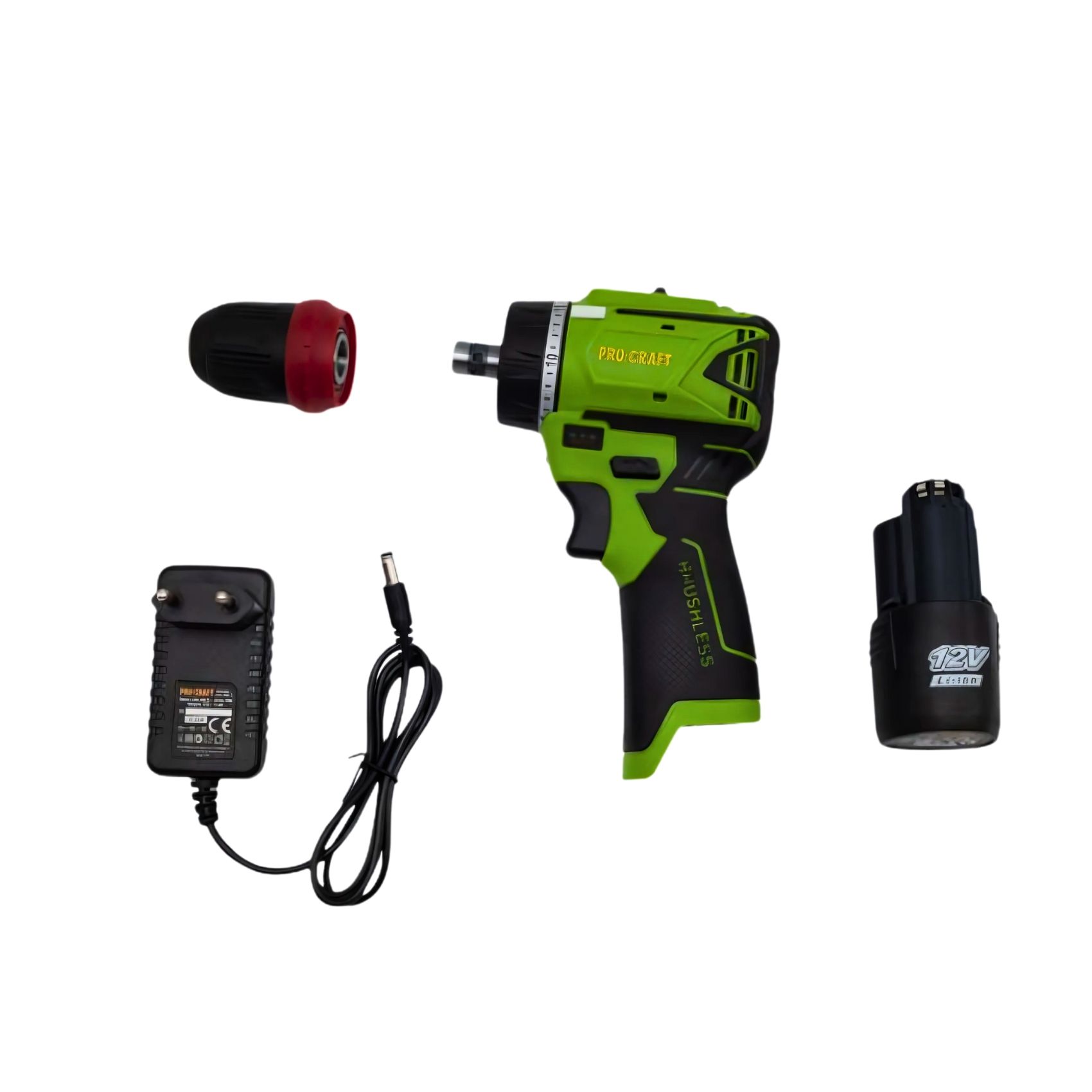 Procraft PA12BL DFR — це потужний акумуляторний шуруповерт з безщітковим двигуном, який відмінно підходить як для професійного використання, так і для домашніх майстрів. Завдяки Li-ion акумулятору ємністю 2 А·год та напрузі 12 В, інструмент забезпечує тривалу автономну роботу без потреби в частій підзарядці.