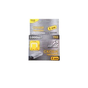 Скоба гартована для степлера TM VIROK Т 53 8ммх1000 шт металік ідеально підходить для використання в будівництві, ремонті, дизайні та інших сферах, де потрібне надійне з'єднання матеріалів.