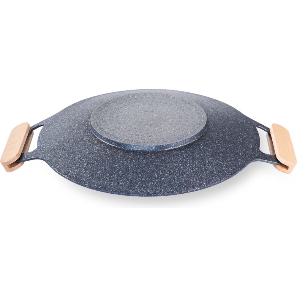 Переваги цієї сковорідки включають високу якість матеріалу, зручність використання завдяки ручкам та величезний діаметр, що робить її ідеальним вибором для готування великих страв.