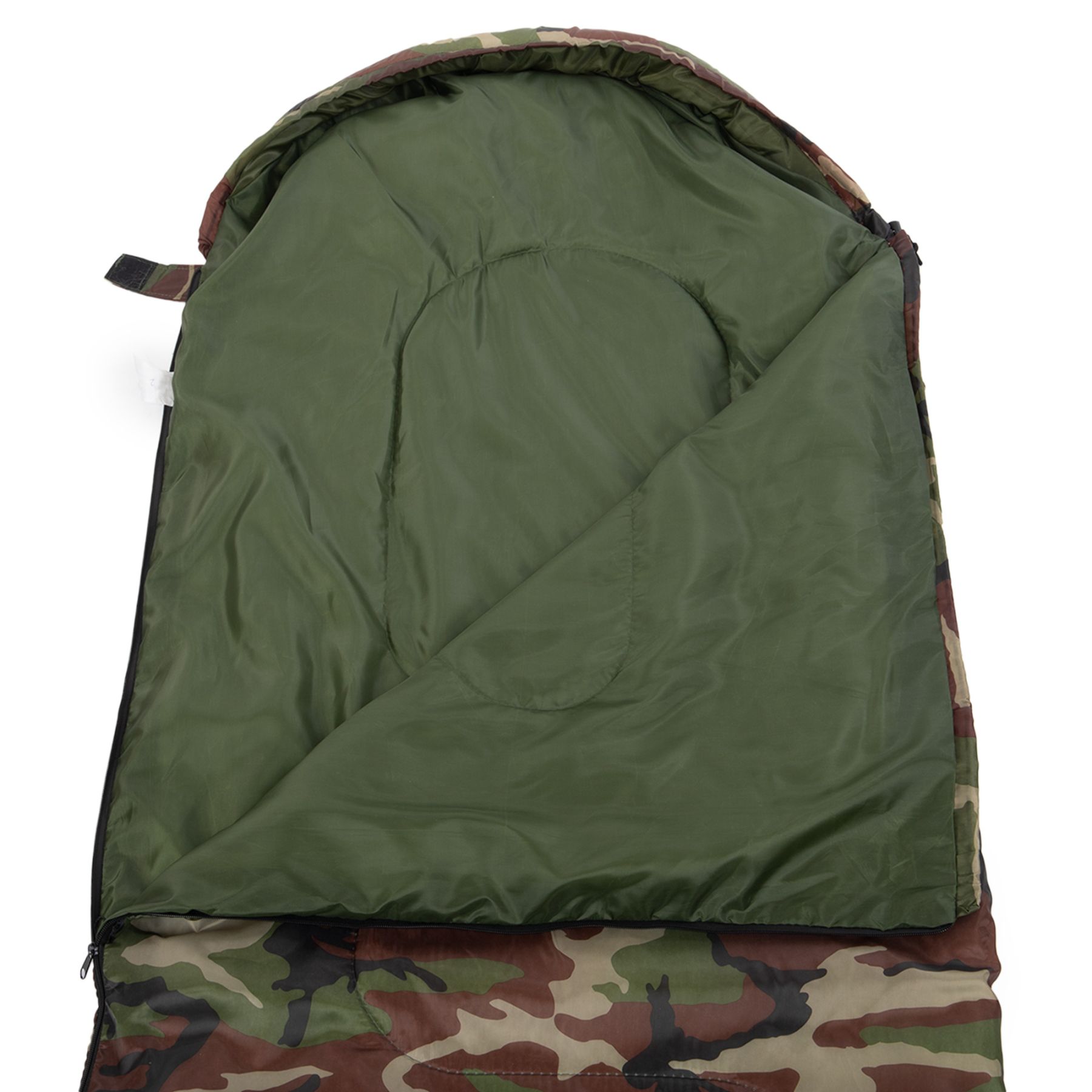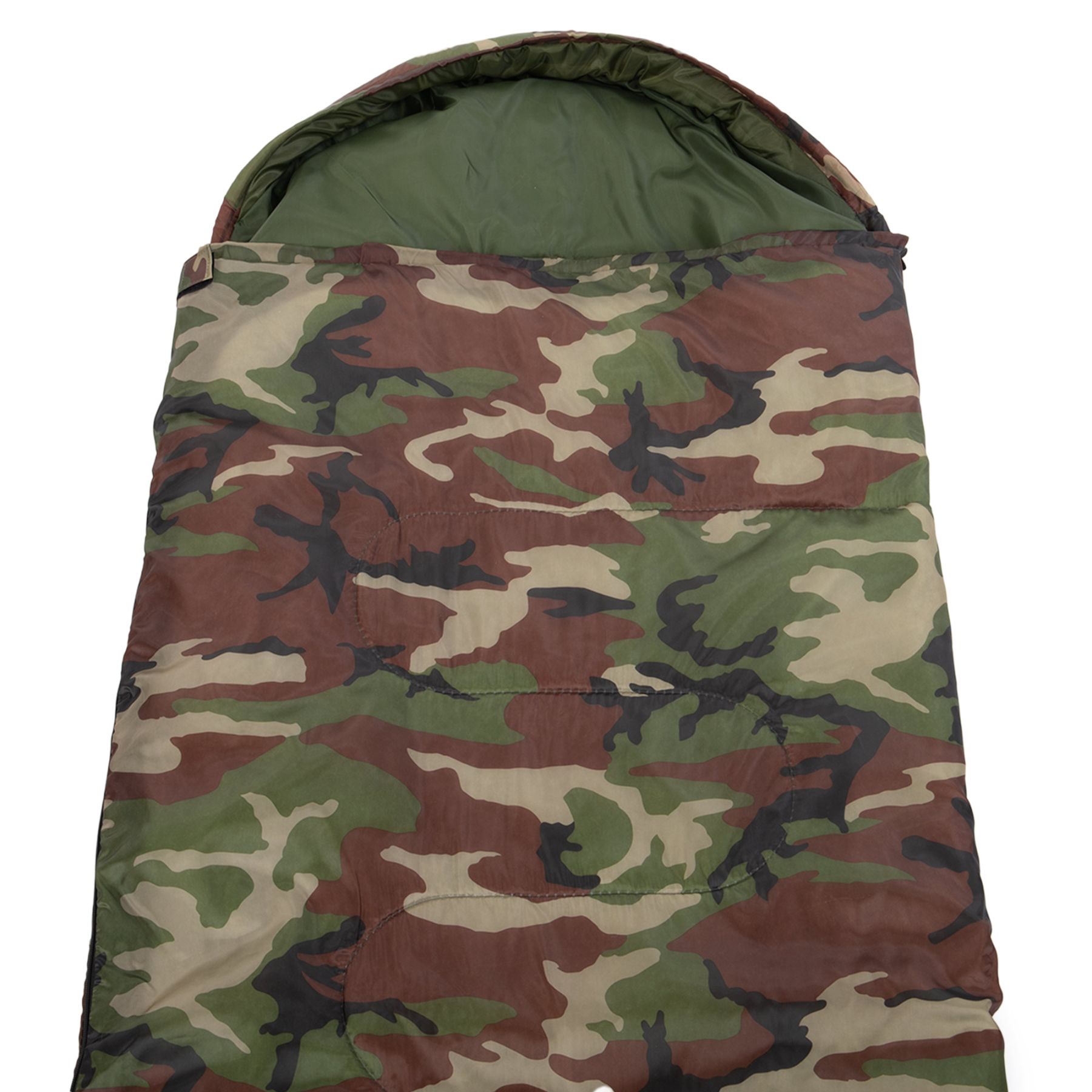 Спальний мішок-ковдра з капюшоном SP-Sport SY-7372 в кольорі камуфляж Woodland— універсальний аксесуар для туризму та відпочинку на природі.