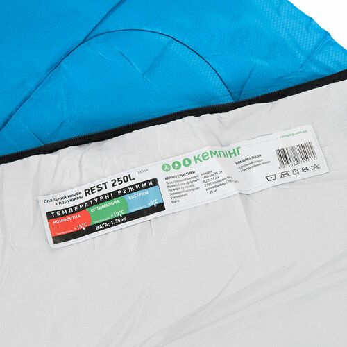Спальний мешок Кемпінг Rest 250L з подушкою ідеально підходить для використання під час кемпінгу, подорожей, походів, рибалки тощо. Він надає затишок і комфорт під час відпочинку на природі.