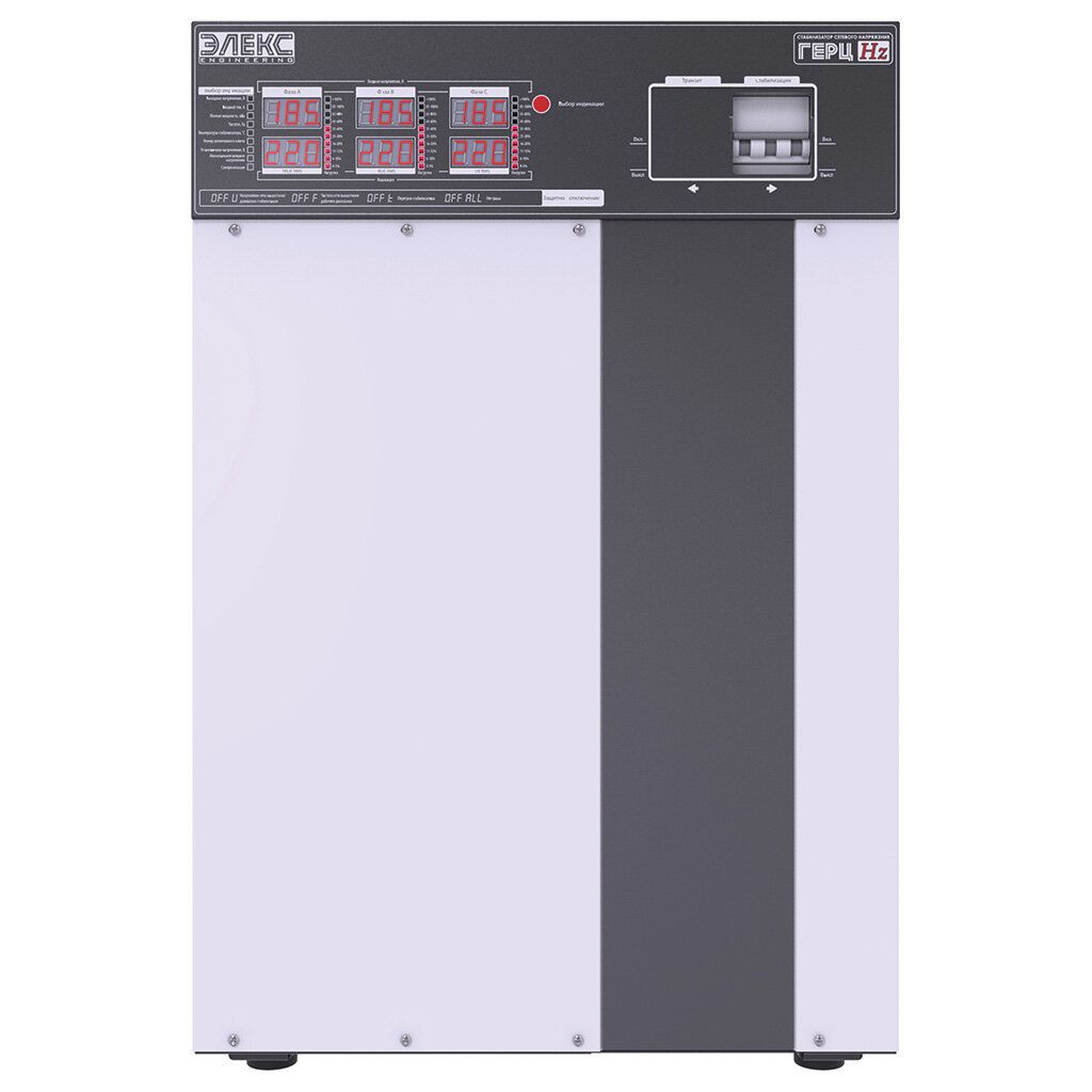 Трифазний стабілізатор напруги ГЕРЦ У 16-3/80 v3.0 призначений для роботи в електричних мережах з коливаннями напруги від 150 до 260В. У цьому діапазоні апарат гарантовано видає на виході напругу в рамках 220±2.3-2.5%, що забезпечується за рахунок використання 16 ступенів стабілізації відповідно. Модельний ряд Герц за потужністю може бути на 16.5, 22.5, 27, 33, 41 та 53 кВт, що відповідає робочому струму на 25, 32, 40, 50, 63 та 80А на фазу.