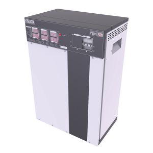 Трифазний стабілізатор напруги ГЕРЦ У 36-3/50 v3.0 призначений для роботи в електричних мережах з коливаннями напруги від 150 до 260В. У цьому діапазоні апарат гарантовано видає на виході напругу в рамках 220±1-1.5%, що забезпечується за рахунок використання 36 ступенів стабілізації відповідно. Модельний ряд Герц за потужністю може бути на 16.5, 22.5, 27, 33, 41 та 53 кВт, що відповідає робочому струму на 25, 32, 40, 50, 63 та 80А на фазу.