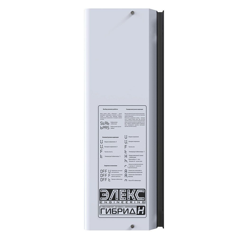Однофазний стабілізатор напруги Гібрид У 7-1/40 v2.0 призначений для роботи в електричних мережах із коливаннями напруги від 135 до 275В (145-275В для виробів малої потужності). У цьому діапазоні апарат гарантовано видає на виході напругу в рамках 220±7,5%, що забезпечується за рахунок використання 7 ступенів стабілізації.