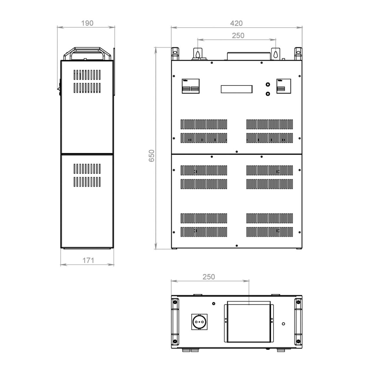 Volter 66 птш – трифазний стабілізатор напруги для квартири або будинку максимальною потужністю 66 кВт, відноситься до серії Volter ПТШ- підвищеної точності з широким діапазоном вхідної напруги, призначений для забезпечення стабілізованою напругою всіх видів електроспоживачів при живленні від мережі з незадовільною якістю напруги.