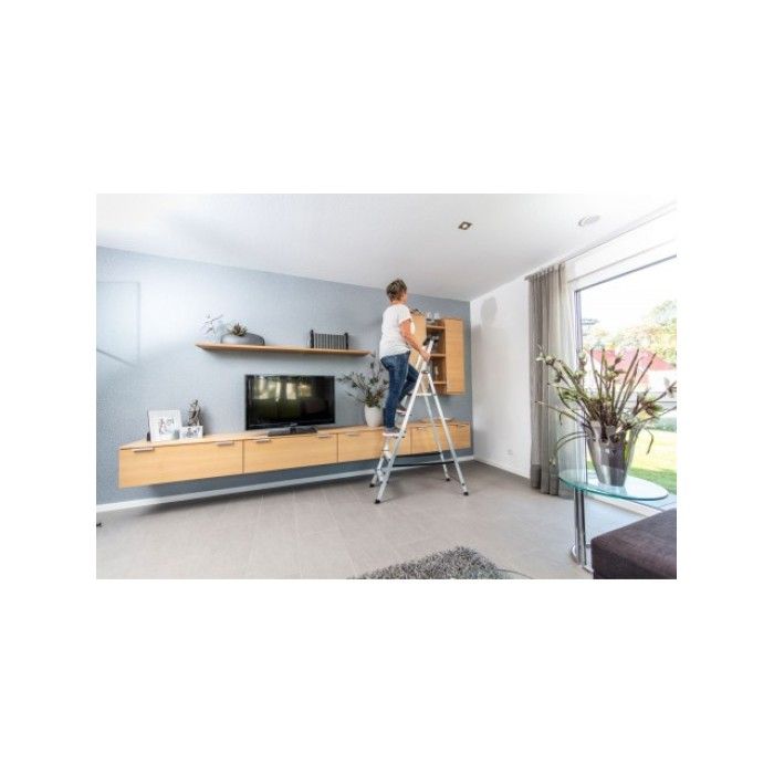 Стрем'янка KRAUSE Safety (5 сходинок) - надійний та безпечний інструмент для використання в побуті та на виробництві. Виготовлений з високоякісного матеріалу, що забезпечує довговічність і надійність в експлуатації. Має п'ять сходинок з антискользячим покриттям, що забезпечує безпечну роботу на висоті. Зручна в зберіганні та транспортуванні завдяки складному механізму. Великий вибір кольорів для підбору під інтер'єр.