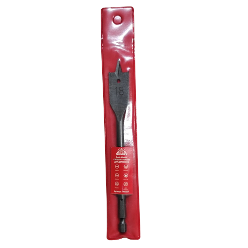 Заданий товар - свердло для дерева пір'яне 18 мм Vitals Master, має матеріал виробництва зі сталі С45. Це свердло призначене для обробки деревини і має загальну довжину 150 мм. Діаметр свердла становить 18 мм, а хвостовик має шестигранну форму. Ріжуче лезо свердла має твердість в діапазоні 45-49 HRC, що робить його дуже міцним та довговічним.