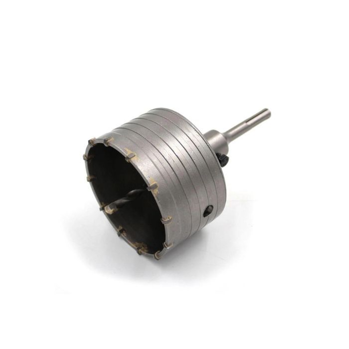 Свердло корончате по бетону 100 мм, YG8C + перехідник SDS-Plus 22*110 мм - це високоякісний і надійний інструмент, призначений для свердління отворів в бетоні, цеглі, камені, плитці. Його діаметр 100 мм дозволяє отримати великі отвори потрібної глибини та діаметру для встановлення електричних проводів, трубопроводів або іншого обладнання. Цей інструмент поєднує в собі міцність та довговічність. Він забезпечує швидке та точне свердління без додаткових зусиль. Завдяки перехіднику SDS-Plus 22*110 мм, це свердло легко встановлюється та знімається з ударної дрилі, що забезпечує зручну та ефективну роботу.