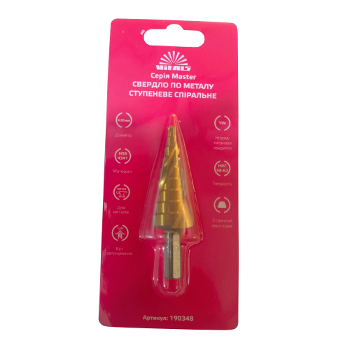 Це ступеневе спіральне свердло Vitals Master з діаметром від 4 мм до 12 мм. Виготовлене з високовуглецевої сталі HSS 4341 (аналог Р6М5), що забезпечує високу твердість ріжучого леза в межах 58-62 HRC. Це свердло призначене для роботи з металом та забезпечує точне свердлення отворів в різних діаметрах. Воно має декілька особливостей, які роблять його унікальним та зручним у використанні. Переваги цього свердла включають його високу твердість, стійкість до зношування та довгу експлуатаційну часу. Також воно має інші унікальні властивості, які забезпечують чудову якість свердління та дозволяють досягти високої точності.