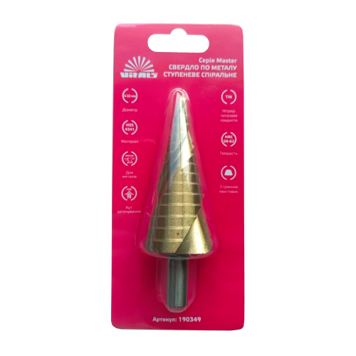 Ступінчасте спіральне свердло Vitals Master призначене для свердління отворів різного діаметра — від 4 до 32 мм — у таких матеріалах, як сталь, алюміній, мідь та пластик. Його конструкція дозволяє створювати отвори потрібного розміру без необхідності змінювати інструмент.