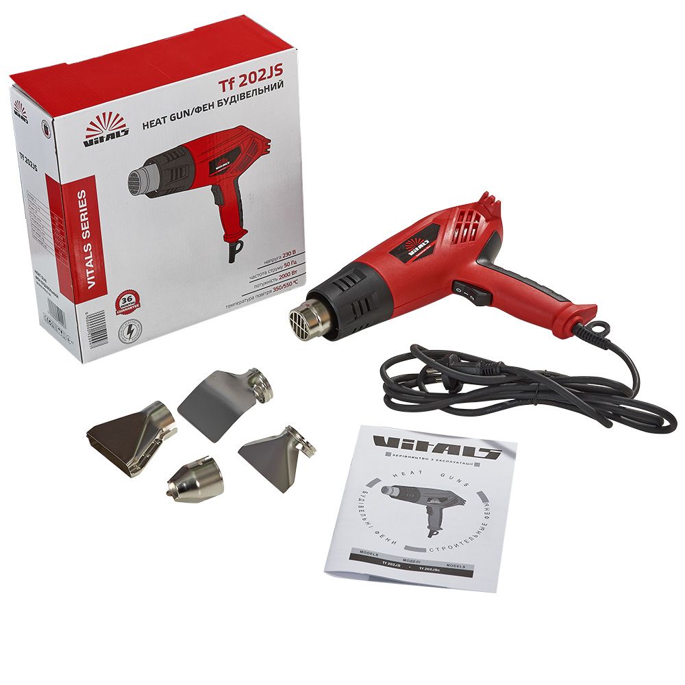 Основні переваги фена будівельного Vitals Tf 202JS: потужний потік повітря, широкий діапазон робочих температур, безпечне використання, надійність і висока продуктивність.
