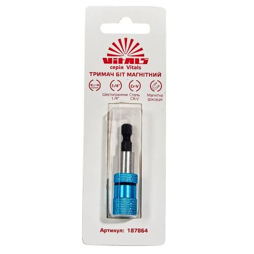 Це бітовий тримач типу 1/4"x60 мм з обмежувачем від компанії Vitals. Виготовлений з високоміцної сталі Cr-V, цей тримач має довжину 60 мм, що робить його ідеальним для використання з бітами розміром 1/4". Він має обмежувач, що дозволяє точно виставити глибину закручування, що полегшує роботу і забезпечує точний результат. Такий тримач ідеально підходить для використання в різних сферах, включаючи будівництво, ремонтні роботи, автомобільний сервіс, меблевий виробництво та багато інших. Завдяки своїм унікальним властивостям, цей тримач стане незамінним інструментом в вашій роботі. Його стійка до зносу сталь Cr-V забезпечує довгий термін служби і надійність. Крім того, він має зручний дизайн, що полегшує його використання і забезпечує комфортну роботу. Додайте цей бітовий тримач до свого інструментарію і насолоджуйтесь якісною та продуктивною роботою.