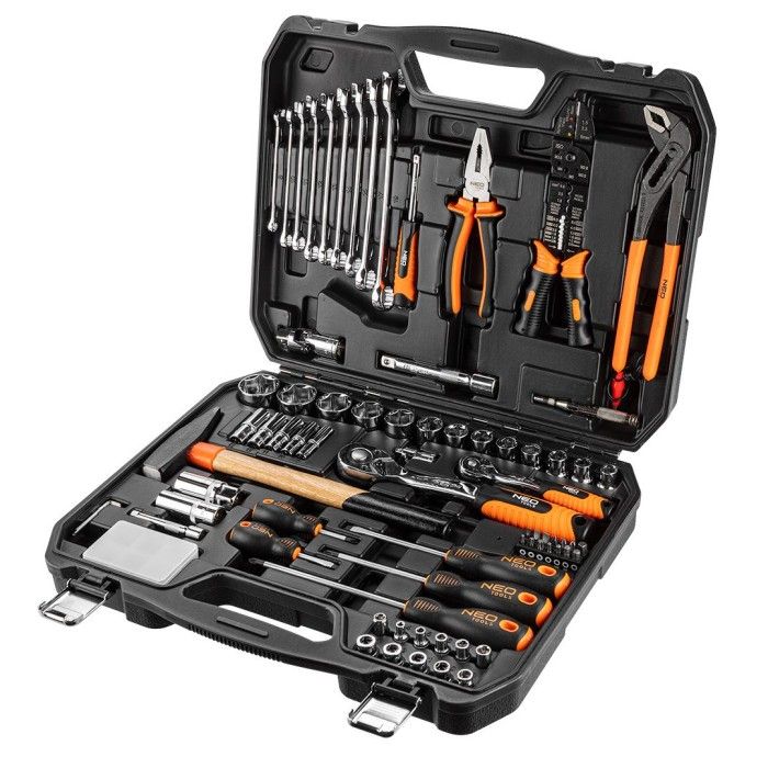 Універсальний набір інструментів від NEO Tools містить 100 предметів і є ідеальним вибором для власників будинку, автолюбителів або професіоналів. Цей набір включає в себе все необхідне для роботи з різними матеріалами і вузлами: гвинтами, гайками, болтами, кабелями та багато іншого. Інструменти виготовлені з високоякісних матеріалів, що забезпечує їх довговічність і надійність. Компактний кейс забезпечить зручне зберігання і транспортування.