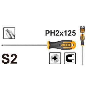 Унікальні властивості та переваги викрутки хрестової S2 PH2×125 мм INGCO INDUSTRIAL: - Висока якість виготовлення; - Зручна форма рукоятки; - Міцне кріплення хрестової головки; - Універсальний інструмент для різних видів робіт; - Відмінне співвідношення ціни та якості.