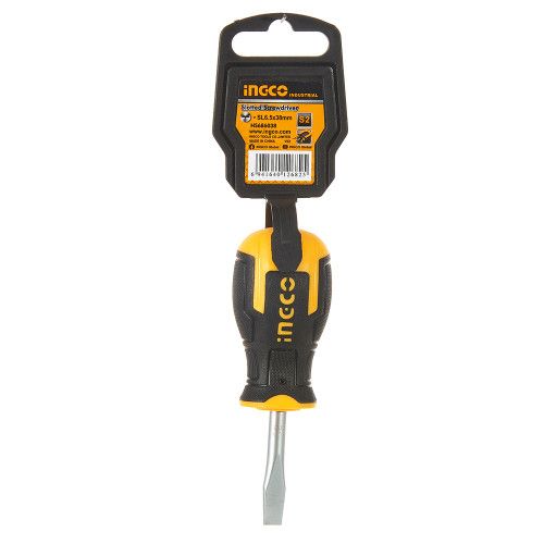 Викрутка плоска S2 6,5х38 мм INGCO INDUSTRIAL є високоякісним інструментом, призначеним для виконання різних робіт з монтажу та розбирання. Вона виготовлена з міцної сталі марки S2, що забезпечує їй довговічність та стійкість до зносу. Завдяки своїм компактним розмірам, викрутка зручна в експлуатації та легко поміщається в кишені або інструментальний пояс. Ця модель має довжину 38 мм, що дозволяє працювати з вузькими кутиками і труднодоступними місцями. Викрутка має рукоятку з зручною ергономічною формою, яка забезпечує надійний захоп та зручне використання. Вона стане незамінним помічником для будівельників, майстрів та всіх, хто регулярно займається ремонтними роботами. Застосовується для завдань, пов'язаних з будівництвом, монтажем меблів, ремонтом автомобілів та багатьма іншими. Викрутка плоска S2 6,5х38 мм INGCO INDUSTRIAL - надійний інструмент, який допоможе вам в будь-якій роботі.