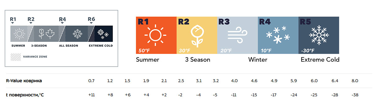 R-value 4+ — для зимових походів, гір або холодної погоди.