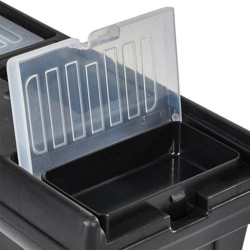 Переваги ящика для інструментів Vitals з пластиковими замками 12" TB-312: - Міцний пластик, що забезпечує надійну захисту від ударів та пошкоджень - Компактний розмір та розділення на відділення для зручного розміщення інструментів - Пластикові замки забезпечують безпечне зберігання інструментарію - Універсальне застосування в різних галузях - Простий та зручний у використанні