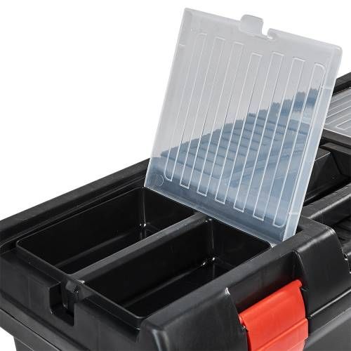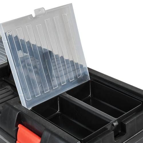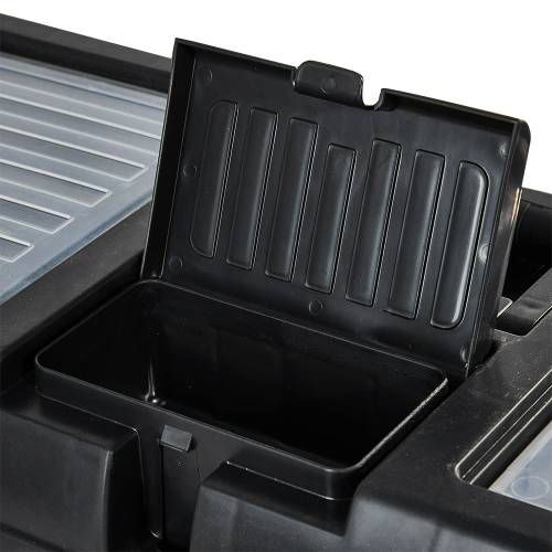 Ящик для інструментів Vitals із пластиковими замками 20" TB-525 ідеально підходить для будівельних робіт, ремонтних робіт у домашніх умовах, автомобільних ремонтів та багатьох інших сфер застосування. Завдяки своїй міцності і стійкості, він забезпечує надійне зберігання вашого інструментарію та захищає його від пошкоджень та втрати.