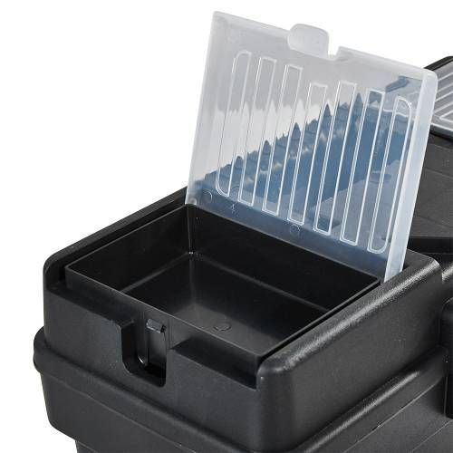 Ящик для інструментів Vitals Master з металевими замками 15" TBM-374 має багато переваг: - Виготовлений з міцного та довговічного пластику, що забезпечує довгий термін служби. - Металеві замки забезпечують надійне закриття та захист від крадіжок. - Компактні розміри дозволяють зручно зберігати ящик в будь-якому просторі. - Роздільники допомагають організувати інструменти за типом або розміром. - Зручна ручка для перенесення дозволяє легко переміщати ящик з місця на місце.