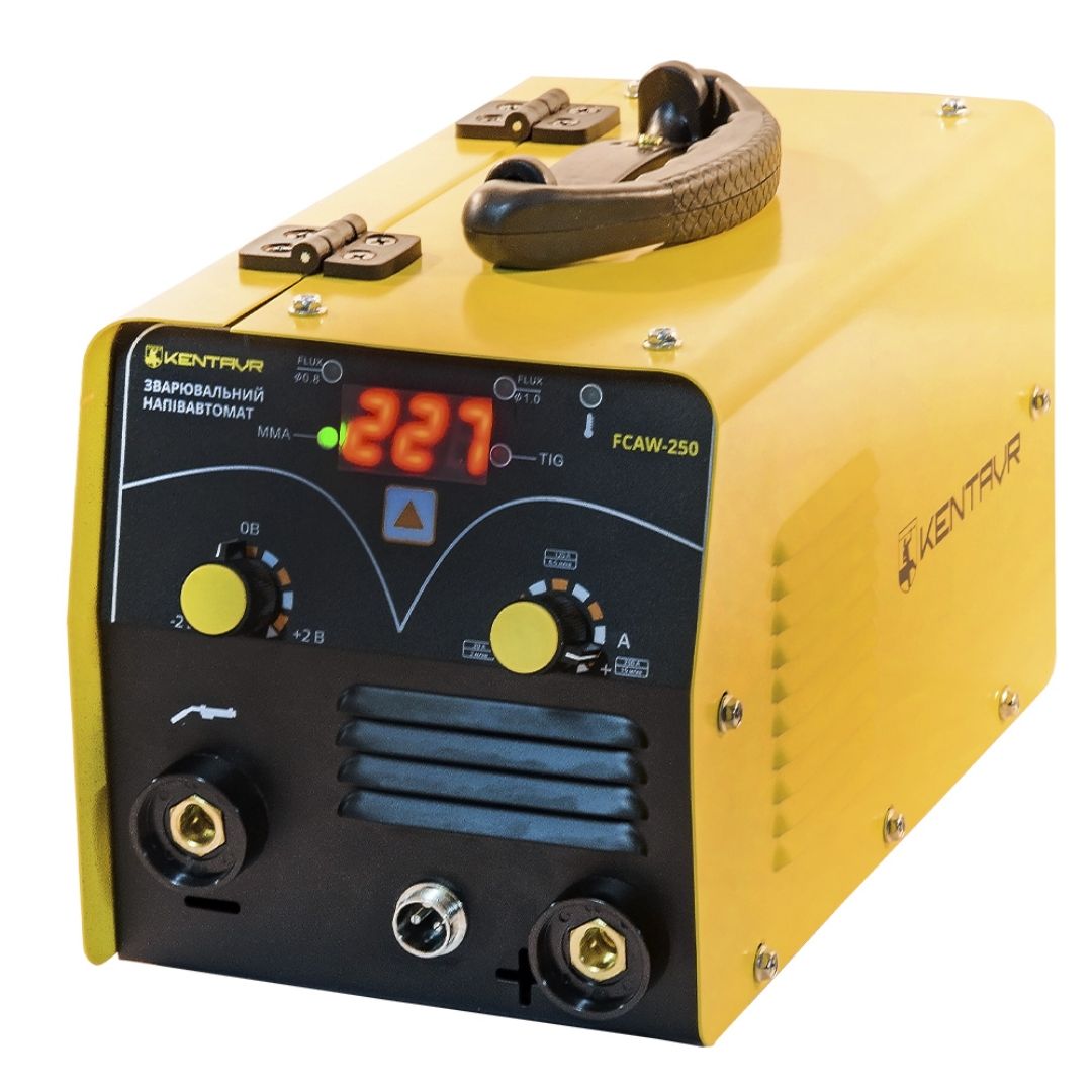 Зварювальний напівавтомат Кентавр FCAW-250 призначений для виконання зварювальних робіт у режимах MMA, FCAW та TIG Lift. Модель підходить для ручного дугового зварювання електродом, напівавтоматичного зварювання порошковим дротом без газу, а також аргонодугового зварювання неплавким електродом. Оснащений інверторною технологією, цифровим дисплеєм та функціями стабілізації дуги для якісного зварювального процесу.