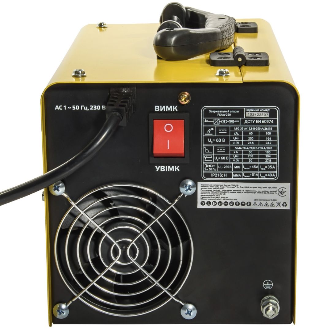 Діапазон зварювального струму FCAW 20–250 А